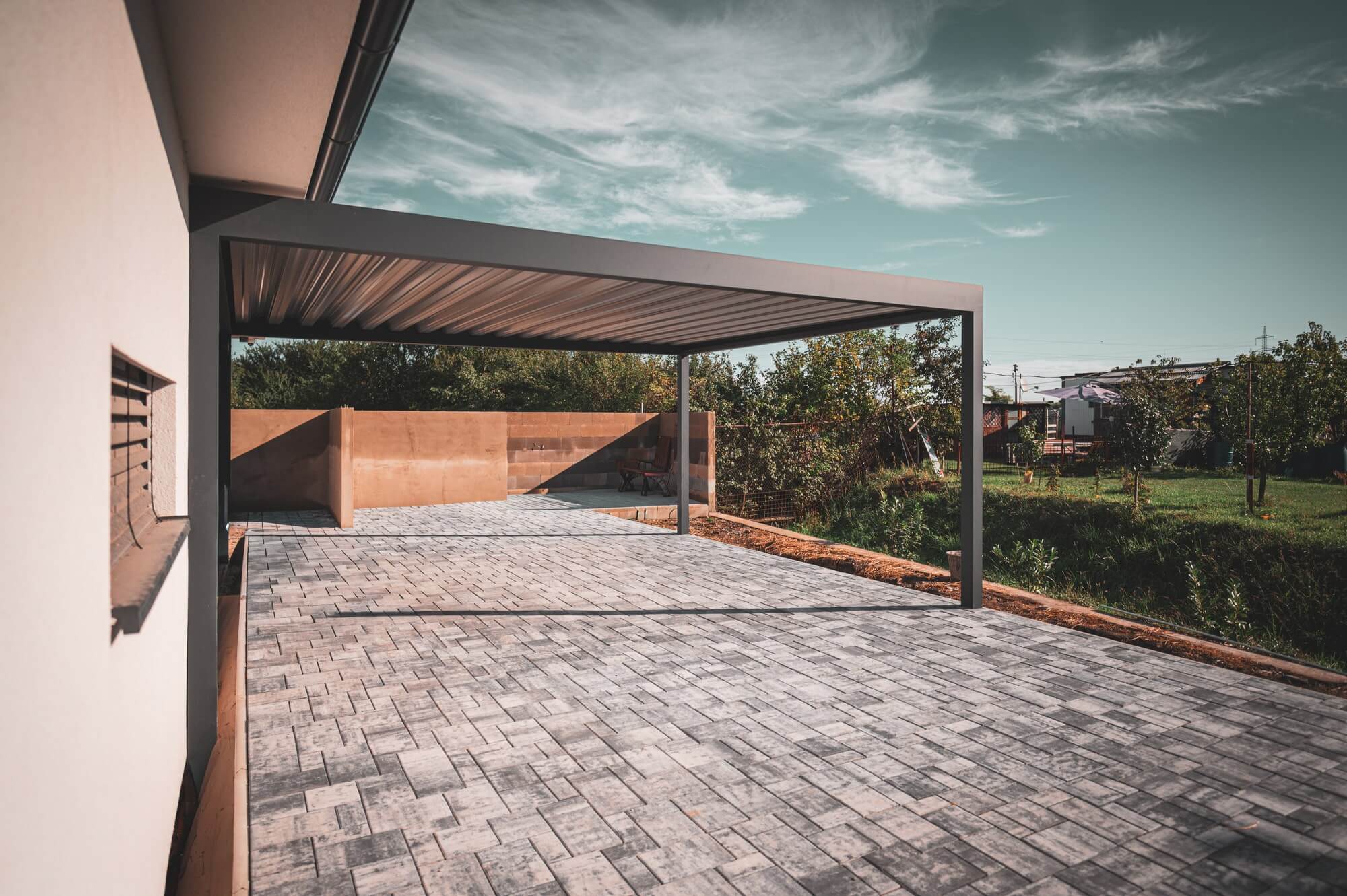 Das Aluminium-Autoabstellplatz aus der Werkstatt von Alutech Bohemia passt dank seiner horizontalen Konstruktion perfekt zu Neubauten mit klaren Linien. Neben dem Schutz des Autos vor schlechtem Wetter schätzen unsere Kunden besonders die Form der Konstruktion, die hervorragend zu den Formen von Pergolen passt, die möglicherweise bereits auf ihren Terrassen stehen.
